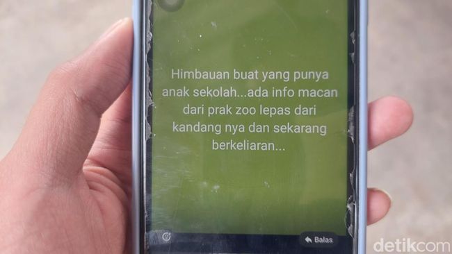 Dalam pesan berantai yang beredar bertuliskan 'Himbauan buat yang punya anak sekolah, ada info macan dari park zoo lepas dari kandangnya dan sekarang berkeliaran'. Tak pelak hal itu membuat masyarakat khawatir.