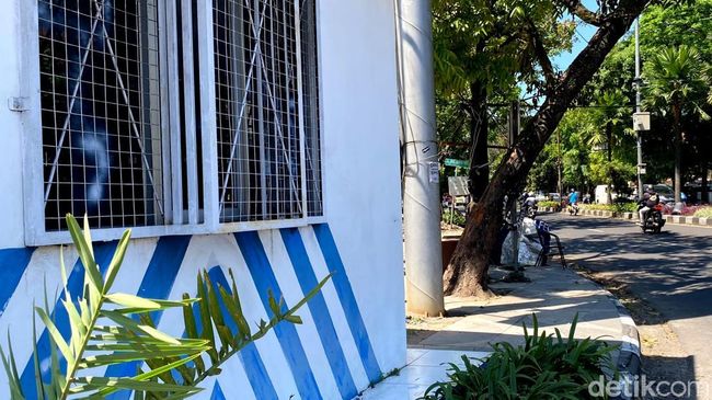 Cat putih dengan setrip biru masih basah di dinding pos polisi di Jalan Riau-Ahmad Yani, Kota Bandung. Pos itu baru saja dicat ulang setelah sebelumnya dipenuhi coretan vandalisme oleh orang tak dikenal (OTK) saat aksi demonstrasi di Gedung DPRD Jabar beberapa waktu lalu.