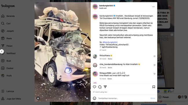 Kecelakaan lalu lintas menimpa sebuah minibus di ruas Jalan Tol Cisumdawu, Jumat (12/9/2025) siang. Peristiwa itu terjadi di dalam terowongan Tol Cisumdawu, dari arah Sumedang menuju Cileunyi, Kabupaten Bandung.