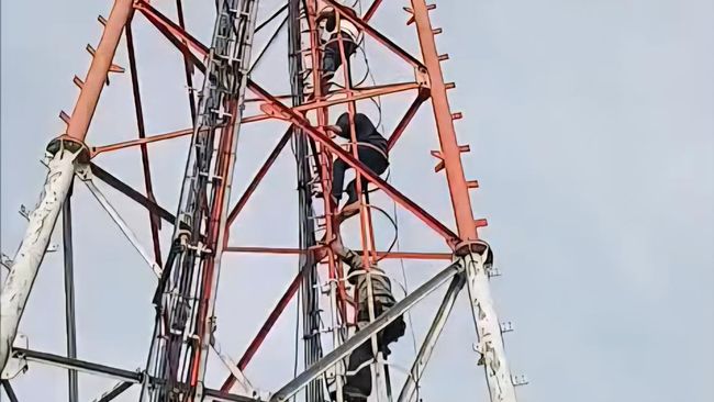 Keheningan malam mendadak mencekam kala seorang laki-laki berusia 17 tahun nekat memanjat tower sinyal setinggi 50 meter. Aksi tersebut terekam kamera warga dan videonya viral di sosial media.