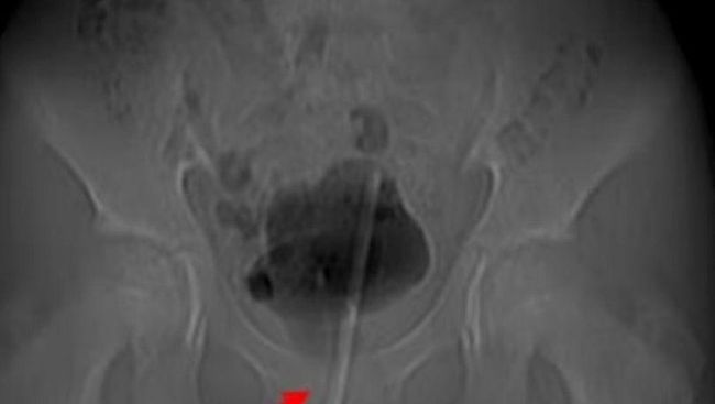 Setelah discan menggunakan x-ray, termometer tersangkut ke dalam kandung kemih melalui saluran kemihnya. Dokter memilih mengangkat termometer itu menggunakan operasi lubang kunci.