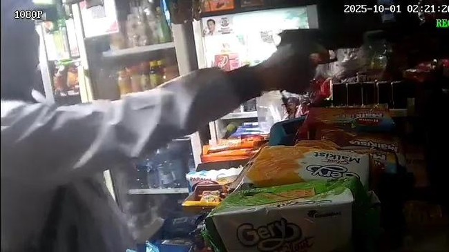 Suasana berubah menjadi mencekam saat pemilik warung menyebutkan jumlah nominal pembelian pria tersebut. Kemudian pria tersebut seolah-olah akan mengambil uang dan tiba-tiba malah mengeluarkan diduga senjata api.