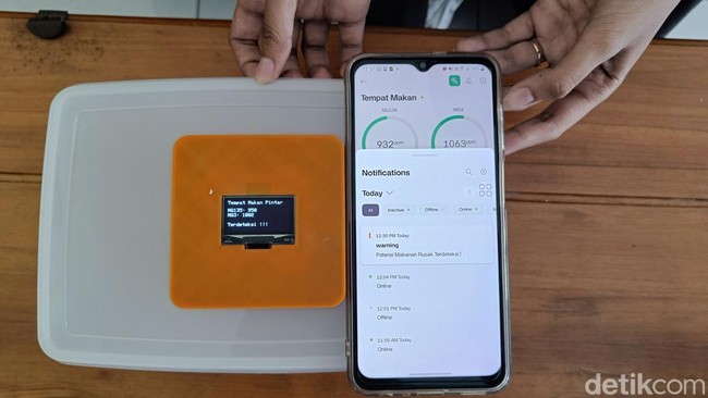 "Jadi alat ini mendeteksi gas yang keluar. Masih mau disempurnakan lagi biar bisa mendeteksi berbagai macam bakteri diantaranya e-coli dan salmonella," ungkap dia.