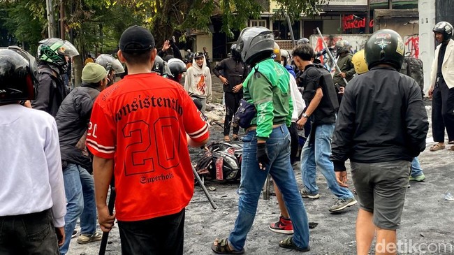 "Ya prinsip masing-masing itu mah kan, mungkin dia pikir seru. Eh enggak lama diseret polisi, dagangannya terjungkir, di video juga jelas banget ada dia sedang lempar batu. Akhirnya ditahan, dan ditebus oleh bosnya," tuturnya.