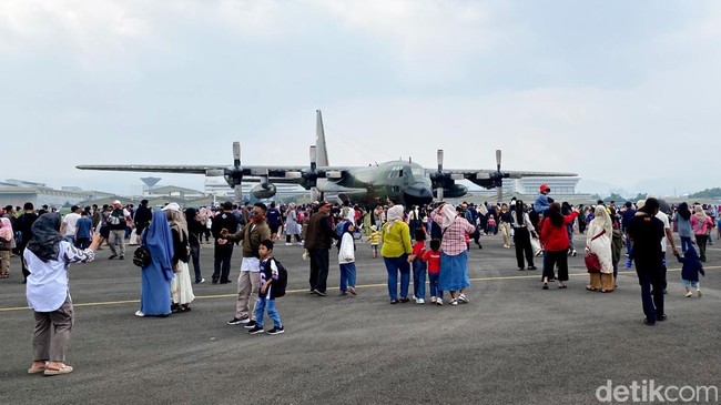 Salah satu warga Tia (31) mengatakan, dia datang ke sana bersama anak dan suaminya. Tia menyebut anaknya senang bisa melihat pesawat dari dekat. "Seru ya, liburan gratis buat anak-anak," kata Tia kepada detikJabar, Minggu (5/10/2025).
