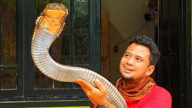 Menurut Panji, king cobra meski berukuran besar, sebenarnya bukan hewan yang agresif terhadap manusia. Ular jenis ini bersifat defensif dan hanya menyerang jika merasa terancam.
