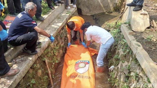 "Setelah yakin bahwa yang berada di aliran irigasi adalah mayat manusia, kemudian melaporkan kejadian tersebut ke Bhabinkamtibmas desa Babakan Polsek Cisaat dan Kades Babakan," kata Astuti.