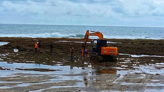 Dalam video berdurasi sekitar satu menit itu, tampak satu unit ekskavator oranye bekerja di atas hamparan karang yang sebagian tergenang air laut. Di sekitarnya terlihat beberapa orang, sementara alat berat itu tampak aktif menghantam permukaan karang.