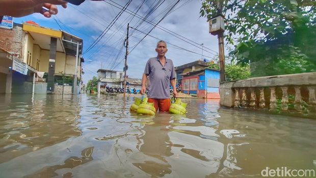 "Kalau di rumah saya agak tinggi jadi nggak masuk, tapi kalau air besar pasti masuk. Cuman tadi di jalan sepaha airnya," jelasnya.