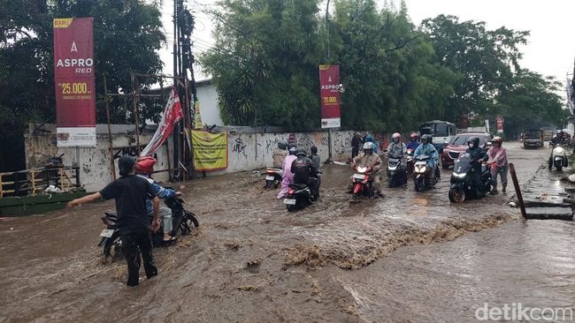 "Tadi beberapa motor memaksa lewat, tapi jatuh terseret arus. Dibantu sama warga juga akhirnya, padahal sudah diingatkan jangan maksa. Bus juga ada, mesinnya ditengah kan enggak nyangka supirnya bisa kebanjiran," kata Ujeng warga sekitar saat ditemui, Jumat (24/10/2025).