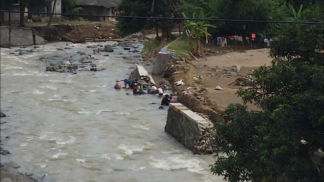 Suara gemuruh dari arah sungai membuat mereka spontan menengok ke belakang rumah. Di sanalah tanggul Sungai Cisolok yang jebol pada akhir Oktober kemarin belum juga diperbaiki.