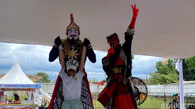 Pengunjung yang duduk di area makan, dihebohkan dengan kedatangan Si Cepot dan Gatotkaca dengan kaki jenjang yang berjalan ke arah pengunjung yang sedang menikmati kuliner di acara tersebut.