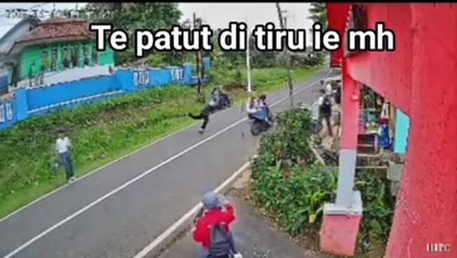 Namun dari arah belakang ternyata masih ada satu sepeda motor lagi yang dikendarai siswa sekolah lain dan melaju kencang lantaran berusaha menghindari aksi pencegatan dan pelemparan tersebut.