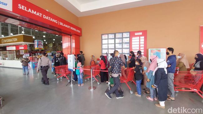Barulah pada pukul 10.00 WIB saat petugas keamanan membuka pintu supermarket, warga yang menunggu sejak pagi mulai berbaris rapi masuk ke supermarket. Ada yang membawa troli ada pula warga yang hanya menenteng tas belanja.