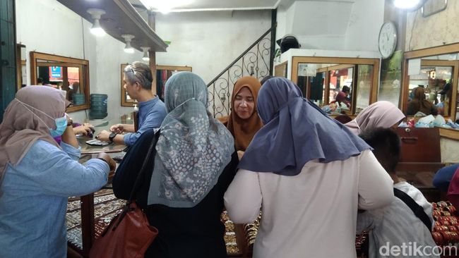 Pantauan detikJabar, Jumat (11/3/2022), toko emas di Pasar Cigasong, Kabupaten Majalengka nampak dipadati pengunjung. Para pengunjung terlibat transaksi dengan para penjaga toko.