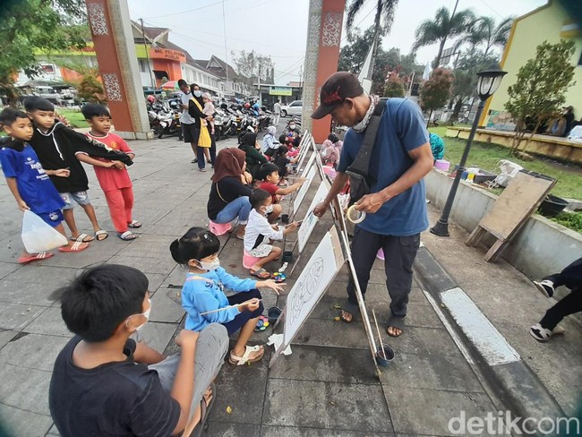 "Ya, seneng aja anak jadi anteng mewarnai dan pastinya ini bisa melatih keterampilan anak, dari pada seharian main ponsel terus," terangnya.