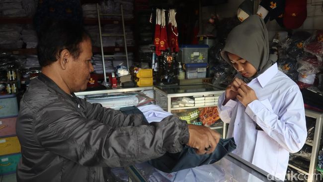 Menjelang tahun ajaran baru, para penjual peralatan sekolah, khususnya seragam, di kawasan Kosambi, Kota Bandung meraup cuan. Penjualan naik hingga 100 persen.
