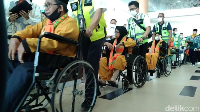 Pantauan detikJabar di lokasi, sejumlah calon jamaah haji terlihat menggunakan kursi roda, dengan dibantu oleh petugas. Mereka secara tertib berjalan menuju pesawat yang sudah bersiap di landasan.