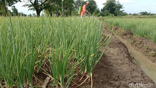 Seperti pantauan detikJabar di persawahan desa Juntiweden, Kecamatan Juntinyuat, Kabupaten Indramayu. Puluhan hektare lahan terhampar tanaman bawang merah yang tersebar di beberapa titik.