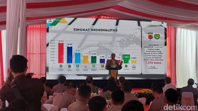 Saat memberikan sambutan dalam peresmian Gedung Rawat Inap Rumah Sakit Bhayangkara Indramayu, Gedung Dit Samapta, dan Gedung Dit Tahti Polda Jabar, Ridwan Kamil mengatakan ada 7 ribu kasus kejahatan terjadi di Jabar sepanjang 2022.