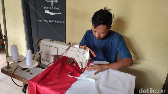 "Pulang kampung, mencoba bikin bendera, umbul-umbul. Banyak pesanan lalu mengajak warga untuk ikut menjahit bendera," ungkap Suryaman, salah seorang perajin bendera, Rabu (7/6/2023).