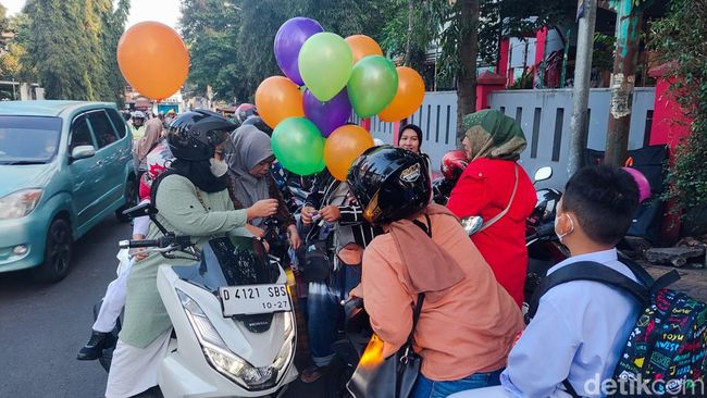 "Nggak ada, cuma bawa balon ini saja. Memang yang pentingnya kan sekolahnya ya. Kalau bawa macam-macam malah membebani kita dan anaknya," tutur Dwita.