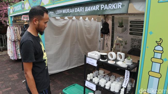 "Kami dari Guna Craft House, yang fokus membuat suvenir dengan bahan semen, ada pot bunga, tatakan gelas, asbak dan dekorasi lain tapi kebanyakan pot sih," kata Ruby saat berbincang dengan detikJabar di acara Festival Hijriah di Masjid Pusdai, Bandung, Kamis (27/7/2023).