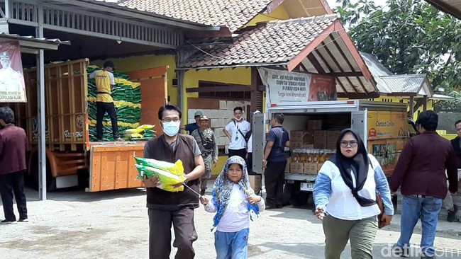 Momen itu terjadi di Desa Duren, Kecamatan Klari, Kabupaten Karawang pada Rabu (20/9/2023). Warga diberi 'suntikan' harga beras murah melalui operasi pasar murah (OPM).