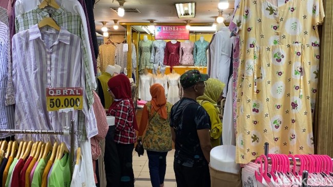 Pantauan detikJabar, Rabu (20/9/2023) di Pasar Baru, Kota Bandung, keramaian terpantau di lantai dasar. Sementara di lantai atas terpantau cukup lengang. Selain itu, di lantai atas, terdapat sejumlah toko yang tutup, bahkan disewakan, namun kondisinya tak separah seperti di saat pandemi COVID-19.