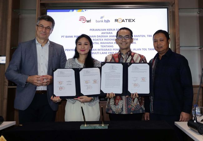 Penandatanganan PKS tersebut dilakukan oleh Pemimpin Divisi Digital Banking bank bjb Arfianto Ramadhian, Presiden Direktur PT Roatex Indonesia Toll System Attila Keszeg, dan Direktur PT Digital Wahana International Nurlia Nafusa yang juga disaksikan oleh Direktur Information Technology, Treasury & International Banking bank bjb Rio Lanasier.