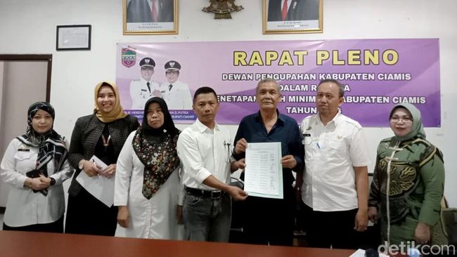 Hal tersebut berdasarkan kesepakatan bersama Dewan Pengupahan Kabupaten Ciamis mengenai rancangan besaran UMK Ciamis tahun 2024. Rapat pleno penetapan UMK Ciamis 2024 dilaksanakan pada Rabu (22/11/2023) di Aula Dinas Tenaga Kerja Ciamis.