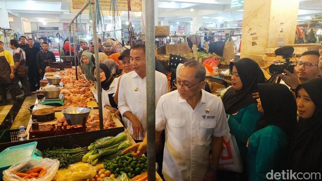Menteri Perdagangan (Mendag) Zulkifli Hasan mengecek harga dan stok sembako di Pasar Tagog Padalarang, Kabupaten Bandung Barat (KBB), Sabtu (1/6/2024).
