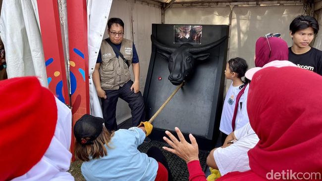 "Tadi saya olahraga dan udah tahu ada acara ini, jadi coba ikutan tarik tambang, anak juga ikutan bantu. Tapi tetep gagal, berat soalnya," ceritanya sambil tertawa.
