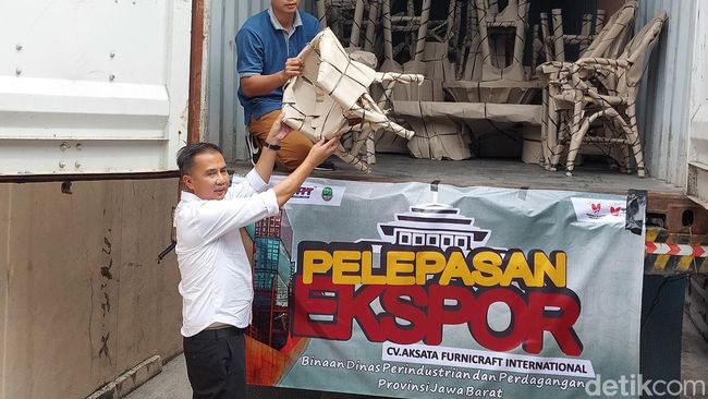 Guna mendukung menggeliatnya pergerakan perekonomian, Pj Gubernur Jawa Barat Bey Machmudin secara langsung melepas kegiatan ekspor rotan di CV Aksata Furnicraft Internasional yang berlokasi di Kecamatan Weru, Kabupaten Cirebon, Sabtu (15/6/2024).