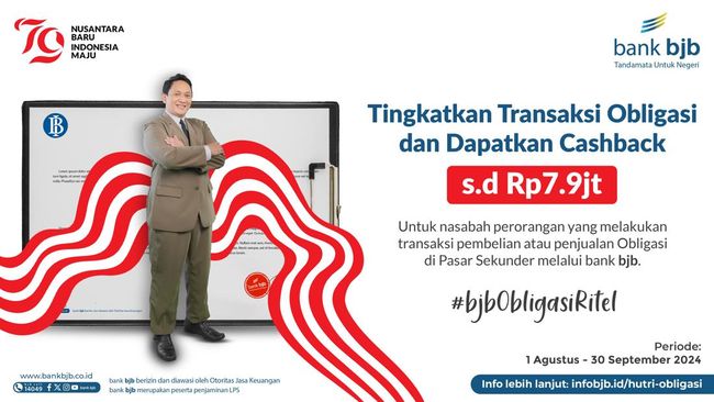 Selain itu, obligasi yang diterbitkan oleh pemerintah tidak memiliki risiko gagal bayar sehingga menjadi pilihan aman bagi investor. Masih dalam rangka memperingati HUT ke-79 RI, bank bjb menawarkan promo menarik berupa cashback jutaan rupiah untuk investasi produk obligasi.