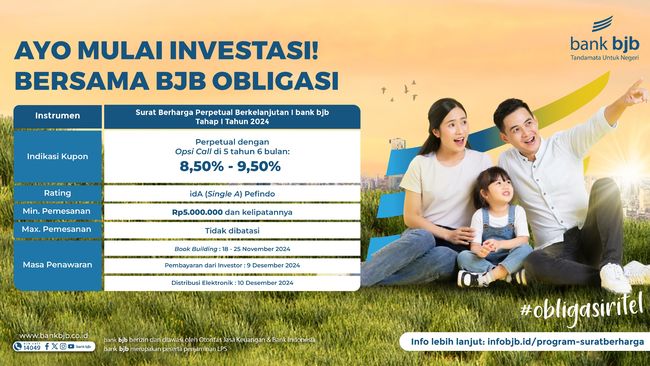 "Surat Berharga Perpetual Berkelanjutan I ini dirancang untuk memberikan manfaat jangka panjang kepada investor. Dengan indikasi kupon sebesar 8,50% hingga 9,50% per tahun, instrumen ini menawarkan imbal hasil yang kompetitif," ujar Corporate Secretary bank bjb Ayi Subarna, dalam keterangan tertulis, Jumat (22/11/2024).