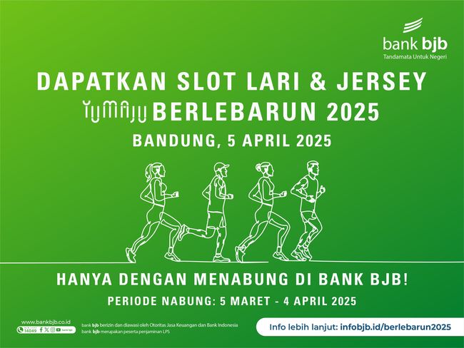 Bagi masyarakat yang tertarik mengikuti program ini, informasi lebih lanjut bisa diperoleh di kantor cabang bank bjb terdekat atau melalui laman infobjb.id/berlebarun2025.. Mengingat kuota terbatas, segera melakukan pendaftaran sebelum periode promo berakhir pada 4 April 2025 mendatang. Jadi tunggu apa lagi, ayo manfaatkan promo Yumaju Berlebarun!