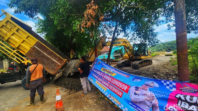 Namun kondisi berbeda terlihat di lapangan. Pantauan detikJabar, dua alat berat masih bekerja meratakan badan jalan tanah yang menjadi akses baru menuju jembatan alternatif. Jalan masih dalam tahap pengerasan, dengan pipa saluran dan material bangunan lain yang menandakan pengerjaan belum rampung.