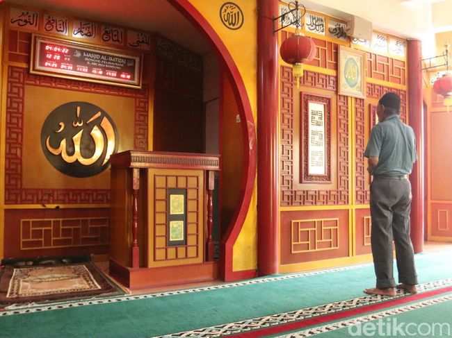 Selain itu, ornamen yang ada di masjid ini juga unik, terdapat kaligrafi, ada juga tulisan Cina hingga lampion. Pengurus DKM Masjid Al-Imtizaj Anen mengatakan, masjid ini didirikan Tahun 2008 lalu.
