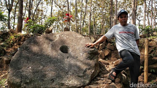 Selain struktur tanah yang berbentuk punden berundak, tiga buah batu andesit dengan lubang di tengahnya, atau yang disebut batu lumpang menjadi benda lainnya yang membuat peninggalan zaman prasejarah di tempat itu makin terasa.