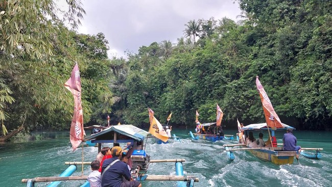 "Biasanya ada sekitar 80 perahu gratis bagi siapa saja yang hadir bisa mengikuti penyusuruan sungai Cijulang menuju Green Canyon sampai ke hulu sungai Cijulang," ucapnya.