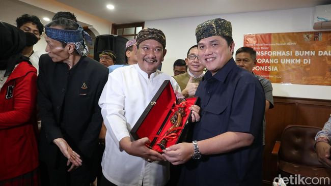 Menteri BUMN Erick Thohir bersilaturahmi dengan para tokoh Sunda. Erick Thohir menggelar pertemuan dengan beberapa tokoh Sunda di kediaman sesepuh Jawa Barat, HD Sutisno, di Kota Bandung, pada Jumat (2/12/2022) malam.
