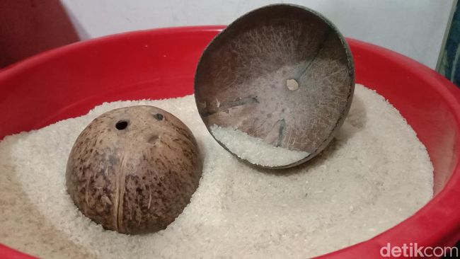 "Arane eter baka batok gede. Sing cilik ukuran setengah eter. (Namanya eter untuk batok besar. Yang kecil ukuran setengah eter)," kata Nayuti saat ditemui detikJabar di Desa Kedokanbunder Wetan, Kecamatan Kedokan Buder, Kabupaten Indramayu, Jumat (3/2/2023).