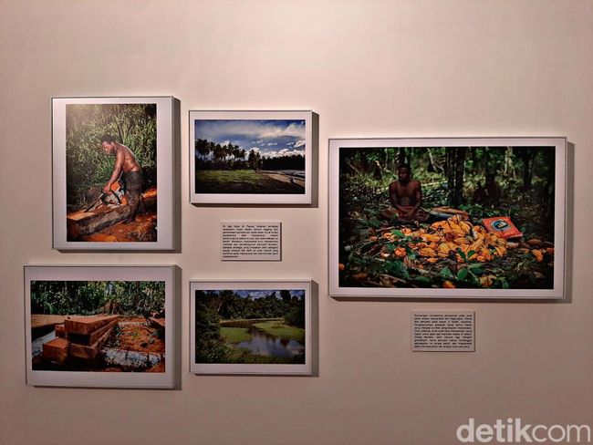 Begitu memasuki galeri pameran, pengunjung akan disuguhkan dengan nama-nama yang terlibat dalam proyek ini. Dimulai dari sebelah kanan, ditampilkan dua buah peta dari lokasi penelitian. Selanjutnya, potret masyarakat Jambi dan Papua juga hadir beserta penjelasan mengenai latar belakang mereka.