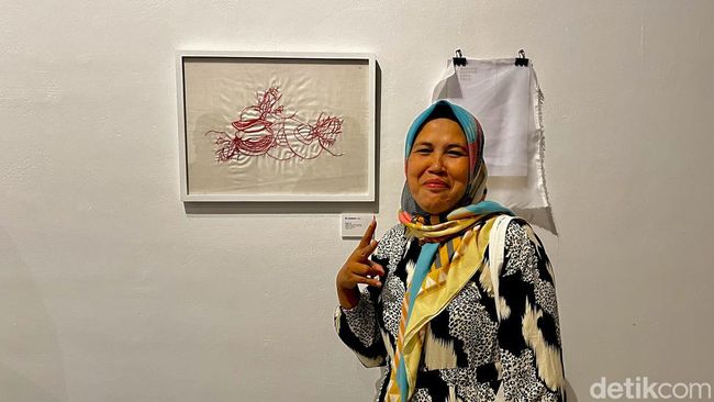 Ditemui detikJabar dalam pameran Maklon di Imah Budaya Jalan Batu Rengat Cigondewah Kaler Rabu (5/4) malam, ia menunjukkan sulamannya yang telah difigura.