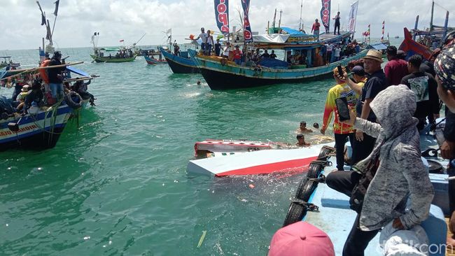 Pantauan detikJabar, Rabu (3/5/2023) para nelayan terlihat antusias mengikuti jalannya ritual pelarungan kepala kerbau. Tradisi yang sudah berlangsung selama puluhan tahun ini dilakukan sebagai bentuk syukur para nelayan atas hasil tangkapan di laut.