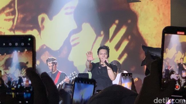 "Hallo selamat malam semuanya, apa kabar? Ini luar biasa, kalian mau meluangkan waktu malam minggu ini buat kita. Terima kasih," kata Ariel menyapa penggemarnya.