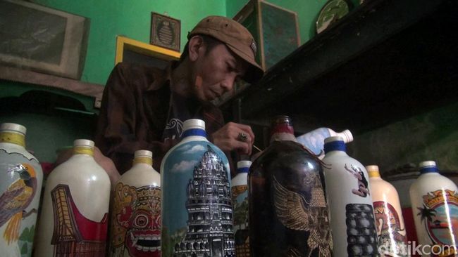 Seorang pelukis asal Kabupaten Subang, Jawa Barat, Bastian Riyadi, memiliki cara memilih konsep dalam berlukisnya. Pria 37 tahun itu menjadikan limbah botol kaca sebagai wadah dia dalam berkarya.