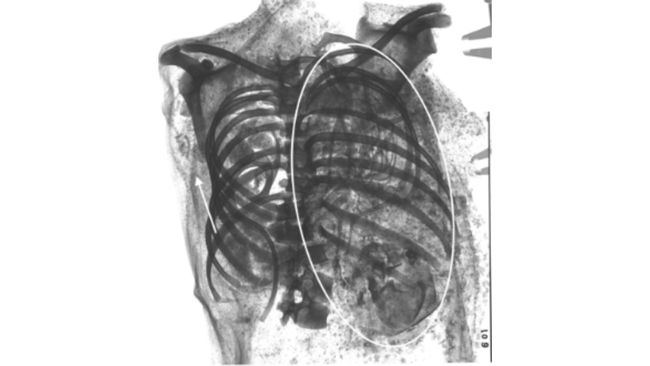Peneliti mengiris perut mumi dan menemukan tengkorak janin tersangkut di jalan lahir, menandakan gadis tersebut meninggal karena komplikasi saat melahirkan. Namun baru satu abad kemudian para peneliti menemukan janin kedua yang secara misterius bersarang di dada gadis tersebut.