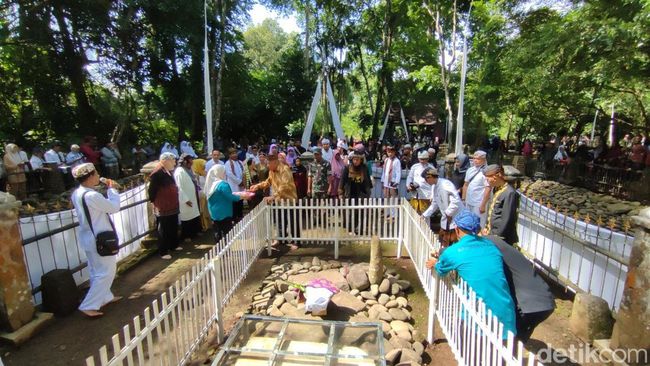 Seluruh rombongan kemudian masuk ke area situs. Namun karena tempatnya yang tidak terlalu besar, jadi hanya sebagian yang masuk. Sedangkan masyarakat lainnya menyaksikan dari luar pagar. Rombongan bersama warga kemudian duduk bersama dan mengikuti doa atau tawasul.